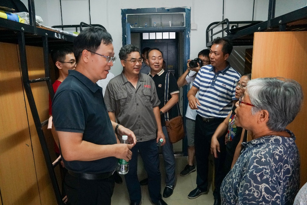 随后,院领导一行来到迎新现场指导迎新工作,慰问参加迎新工作的师生,看望到校的新生和家长们。在升华公寓1栋前,院领导全面了解迎新工作动态,询问新生报到情况,并深入学生宿舍,与刚到校的新生和家长亲切交谈,了解报到手续办理情况。肖来荣书记告诉学生家长:“有什么困难,跟老师或志愿者们说,孩子到这里来学习和生活都有保障,你们可以放心。”