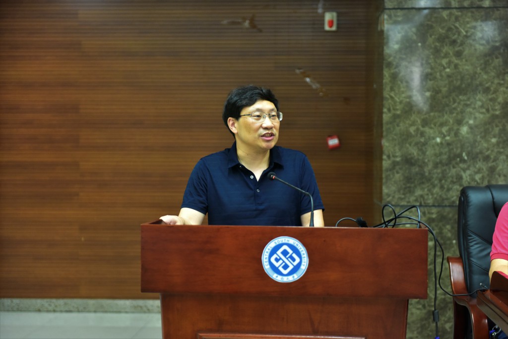接下来,高成德特聘副教授作为教师代表发言。他希望研究生新生首先要肩负责任感和使命感,承担起为人类开拓认识自然的疆界的职责;其次要端正心态、发挥积极主动性;此外还要珍惜时间,持之以恒,有所突破;最后要充分利用学术资源,充分利用各种机会与周围老师同学交流讨论,拓展思维的格局、汲取团队的力量。
