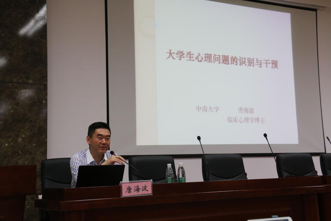 唐海波教授讲授《大学生心理问题的识别与干预》课程,以看图小测试开场,调动了现场同学的积极性。唐教授向同学们讲授了心理疾病的分类以及相关症状,指导学生干部们如何识别心理疾病,以及当发现心理问题同学的处理了办法。唐教授还强调了寝室长在大学生心理危机干预中的重要作用,鼓励并要求寝室长要加强心理危机问题的重视程度。谭鑫老师讲授了《生命的另一种可能——自杀与生命意义专题讲座》,谭老师从最近大学生熟知的蓝鲸自杀游戏开始讲起,对大学生常见的自杀心理现象进行了讲解,让学生们对自杀相关理论和知识有所了解,接着以生命的意义是什么和如何寻找生命的意义和同学们进行了互动讨论,让同学们明白生命的重要性,珍爱生命。最后对如何预防自杀、如何关注同学们的心理危机进行了讲解,同时告知同学们心理困扰很普遍也很正常,适当的求助才是强者的行为,取得了很好反响。