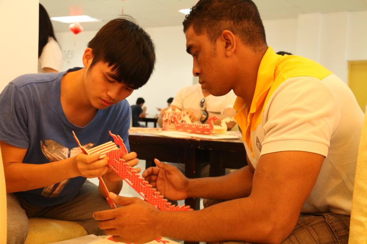 端午节作为中国的传统节日,有很多的习俗,让留学生们与中国学生们一同庆祝这个节日,意义非凡。香囊制作,祛病除恶,延年益寿,表达了人们对美好生活的祝福;书法艺术,散发着古老艺术的魅力,受到一代又一代人们的喜爱;赛龙舟,是亚洲国家盛行的民间活动,体现了悠久历史文化的继承性和集体主义精神;五色绳与包粽子,更是民间艺术的生动体现。