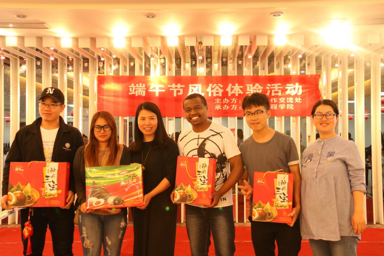 5月24日下午,由8455新葡萄娱集团am国际合作交流处主办,我院承办的“端午忆昔,紫荆盛开”第二届中外学生端午节风俗体验活动在二食堂4楼圆满举行,200余名中外学子欢聚一堂,共同体验中国传统佳节的风俗活动。8455新葡萄娱集团am国际合作与交流处办公室主任王友良、袁老师,8455新葡萄娱集团am党委副书记马俊、学院团委书记周芳、辅导员肖楚楚出席活动。