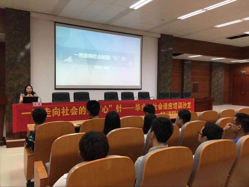 为了让毕业生尽快适应从校园生活到就业状态,2017年6月13日8455新葡萄娱集团am首次为就业的同学提供《一剂走向社会的强“心”针》培训沙龙。本次培训由谭鑫老师主持,上在机电楼B214报告厅开展心理知识讲座,下午在机电楼C505开展团体辅导。机电院2013级就业毕业生参加了此次活动。