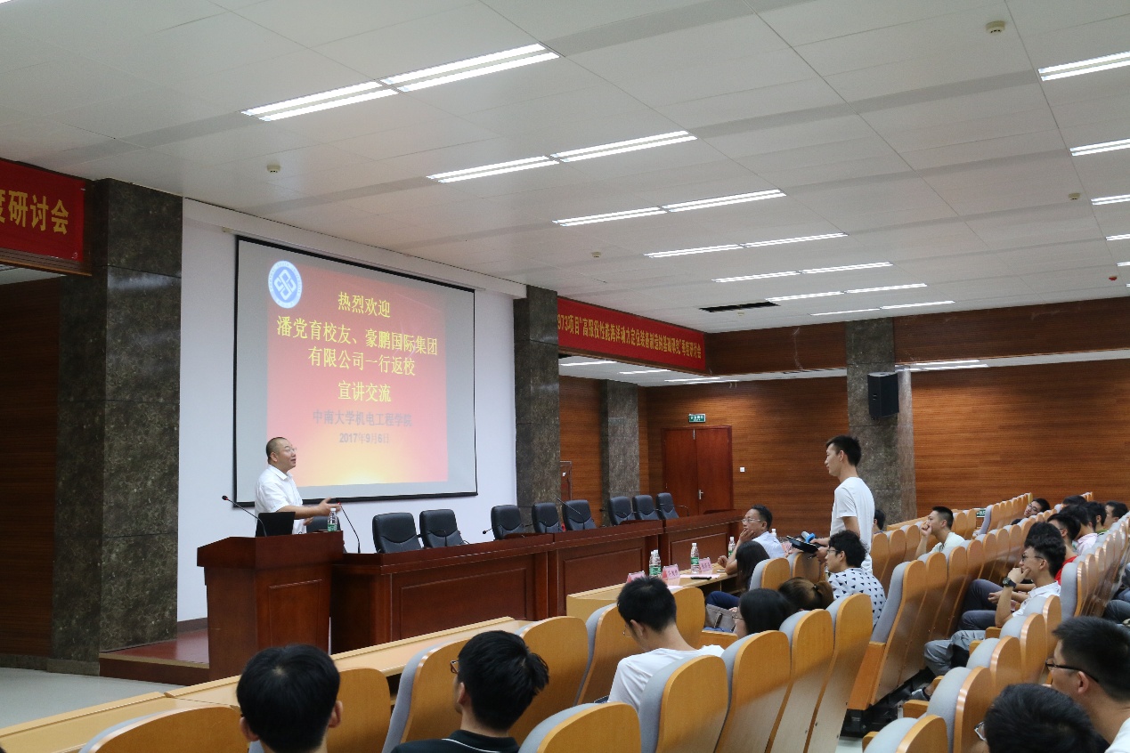 首先,黄明辉院长对潘党育校友一行的到来表示热烈欢迎!黄院长介绍了潘党育校友的创业史,他说,潘董事长是清洁能源领域的一名坚强开拓者,自1990年毕业于原中南工业大学冶金机械专业和工业外贸班后,进入企业工作,最终创立豪鹏国际,并在美国纳斯达克上市。