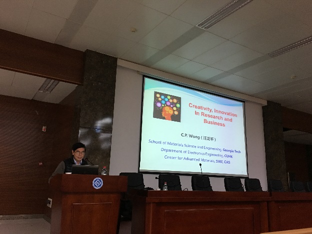 汪正平院士是美国工程院院士(2000年)、中国工程院外籍院士(2013年)、香港中文大学电子工程教授、工程学院院长、美国佐治亚理工学院董事教授以及中国科学院深圳先进技术研究院“先进电子封装材料”广东省创新科研团队负责人以及首席科学家。汪正平院士长期从事电子封装研究,因几十年来在该领域的开创性贡献,被IEEE授予电子封装领域最高荣誉奖——IEEE元件、封装和制造技术奖,并被业界誉为“现代半导体封装之父”,现已获得业界普遍认可。此次报告,汪院士结合自身在科研、教育以及企业的经历详尽地解读了有关创新创意的关键点,引导同学们将现有的创新性想法运用到学习和研究中去。本次学术报告,汪正平院士旁征博引、风趣幽默的演讲,使现场参加学术报告的师生们感受到创新的学术思想。报告结束后与会人员踊跃提问,老师和同学们就创新和创业方面的问题与汪院士进行了充分的交流,令人受益良多。在与会人员热烈的掌声中,本次报告圆满落幕。