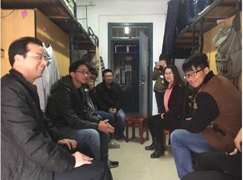 2015年11月29日上午,我院党委邓华书记和马俊副书记到寝室慰问在巡逻时斗智勇救落水者的蔡志东同学,随行的还有15级辅导员张国强和王江委老师。
