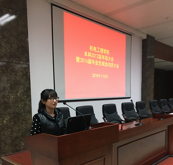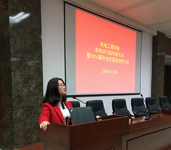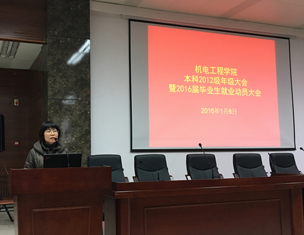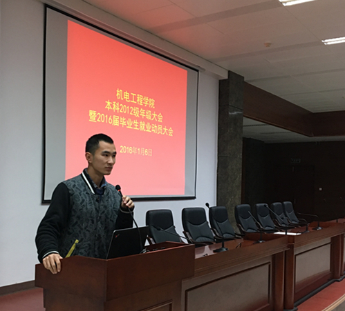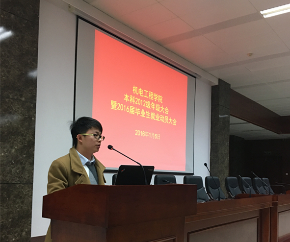 2016年1月6日下午,8455新葡萄娱集团am本科2012级全体学生在中铝科技大楼B214报告厅举行了年级大会暨就业动员大会。与会老师有:院党委副书记马俊、学工办主任刘文杰,教务处刘熔硒老师,辅导员童俊杰、周芳,班导师胡小舟、胡友旺、肖楚楚、何婷。会议由辅导员周芳老师主持。