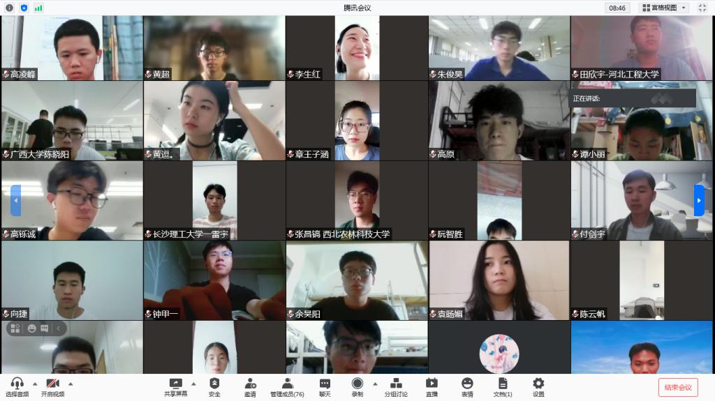 7月3日上午8:30,8455新葡萄娱集团am党委书记肖来荣教授、主管研究生工作副院长蔺永诚教授、学科专业方向负责人、研究生管理办公室主任莫玲老师等工作人员,与参加活动的300余名学子线上相聚、云端互动,拉开了本次“夏令营”活动的序幕。