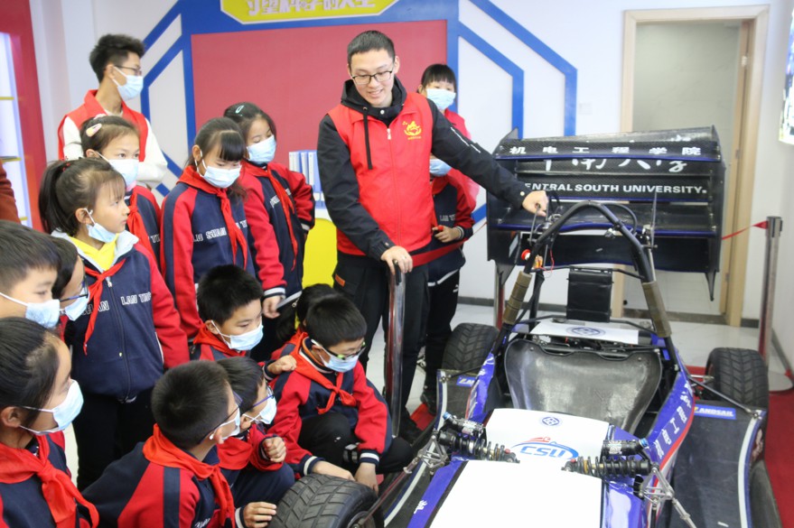 随后,校外基地的首场“社区科普公开课”拉开帷幕,8455新葡萄娱集团am的志愿者为现场的居民、小朋友送上了一堂精彩纷呈的科普课程。首先展示的是3D打印技术,志愿者不仅讲解技术原理、展示多种多样的3D打印展品,更是在现场通过软件设计、硬件加工,打印出动物立体模型。随后开展了多架无人机编队飞行,无人机编组在空中时高时低、时分时合,引发小朋友阵阵惊叹。机器人小组则在数字识别、物品抓握、机动行走方面进行了展示。基地内放置了一辆8455新葡萄娱集团am学生自主设计、制造、装配的电动方程式赛车,该赛车曾在中国电动方程式赛车大赛荣获冠军。小朋友们不仅观摩赛车、学习赛车传动原理,更是坐到车中体验了一把赛车手的感觉。最后,志愿者带来了“酒杯小火山”“神奇的电磁”趣味实验演示。通过动手参与实验,小朋友们对其中的科学原理理解更加深刻。麓山兰亭实验小学1705班的小朋友表示,今天科普课程形式新颖,自己学到了很多科学知识,希望以后能够成为像哥哥姐姐一样的科普讲解志愿者。