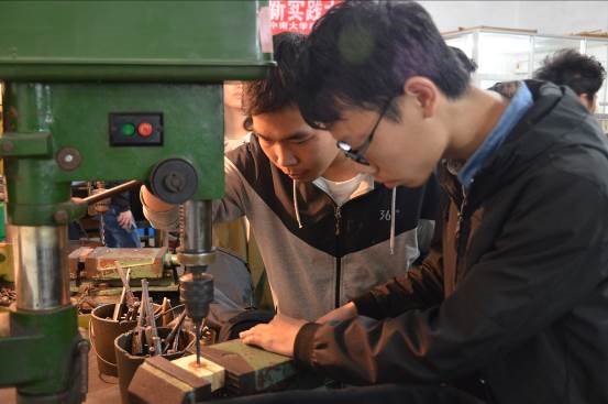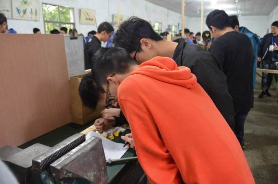此次比赛的内容是在限定的时间内,使用限定的工具和材料,创新设计制作千斤顶。经过前期学习的方案准备,同学们干劲十足,纷纷进展顺利,娴熟地使用钳工器械,一件件各具创意的千斤顶设计方案逐步成型。