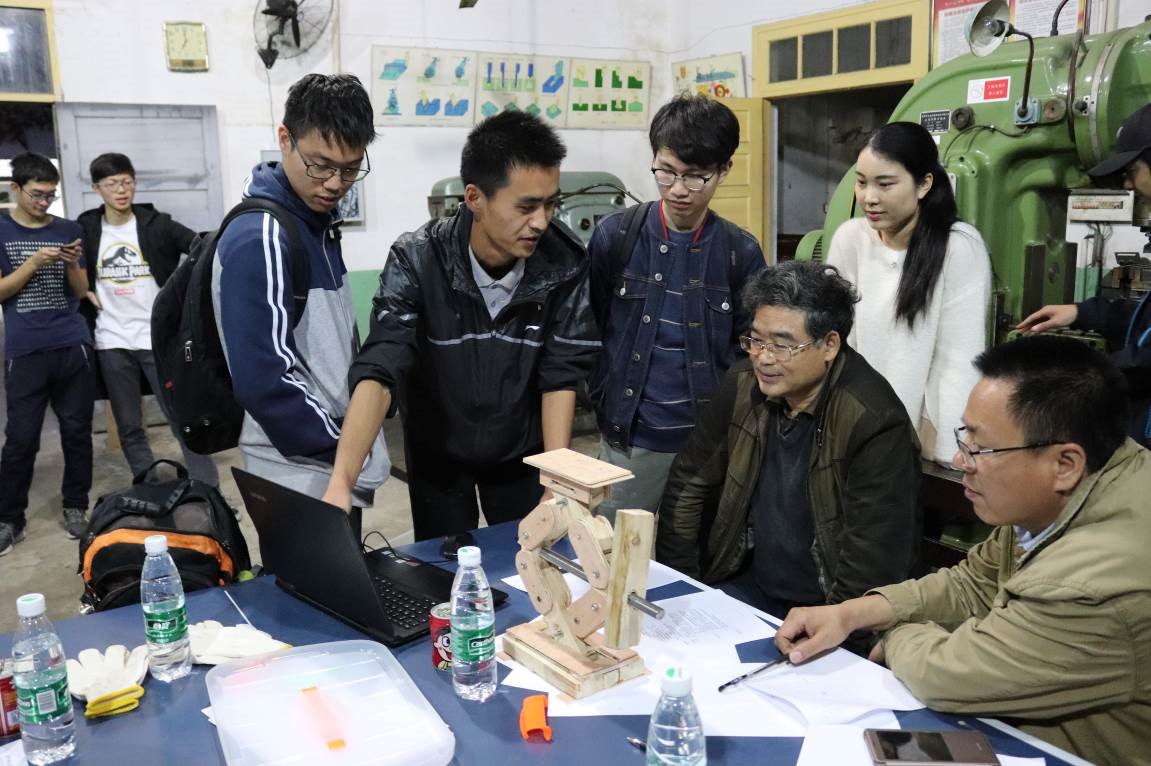 作品评审在周日下午3点开始举行,每个小组制作的千斤顶必须承重最少20斤,且能实现3厘米的提升。承重成功的团队可以在30斤--70斤的砝码中再选择一组进行挑战,时间为5分钟。评比过程中,不断有各具风采的设计和制作让评委和各位同学眼前一亮。参赛团队精巧的设计体现了创新能力,精致的手工展现了实践水平。评审的结果将在本周三颁奖典礼上公布。